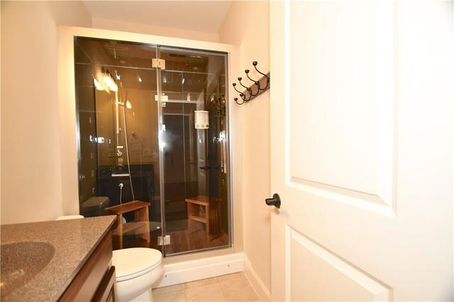 There is a sauna in the lower level bathroom.
